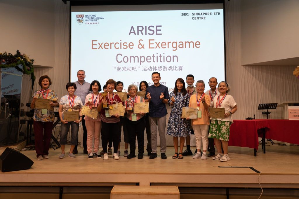 Exergame finalists with three Guests-of-Honor: Dr. Wan Rizal, Member of Parliament for Jalan Besar GRC (Kolam Ayer), Professor May Lwin (Chair of Wee Kim Wee School of Communication and Information), and Dr. Thomas Meyer (Managing Director of Singapore ETH-Centre).