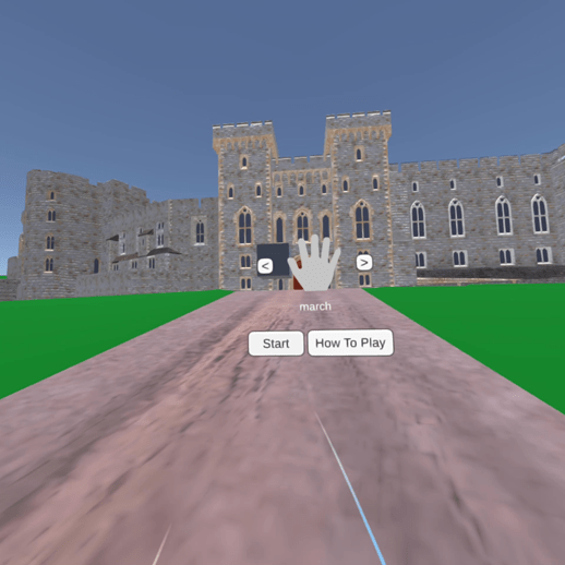 “March of the Royal Guard” is a game where players are transported to Windsor Castle, playing as a renaissance British grenadier soldier in a “Changing of the Guard” ceremony. To win, the player has to march to the beat of the marching band’s music, moving their arms and legs in the rhythm. Multiplayer mode has the player team up with friends to get a collective high score.