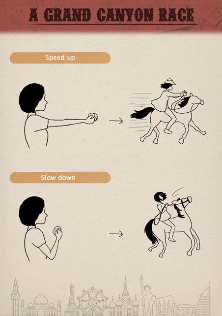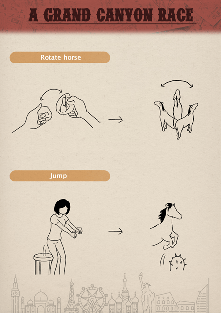 “Grand Canyon Race” is a game where players play as an American settler in the 1700s, racing through rocky terrain on horseback. To win, a player has to reach the finish line before their AI opponent while dodging the cactus obstacles. Multiplayer mode allows for a more competitive gameplay, with players racing against each other.